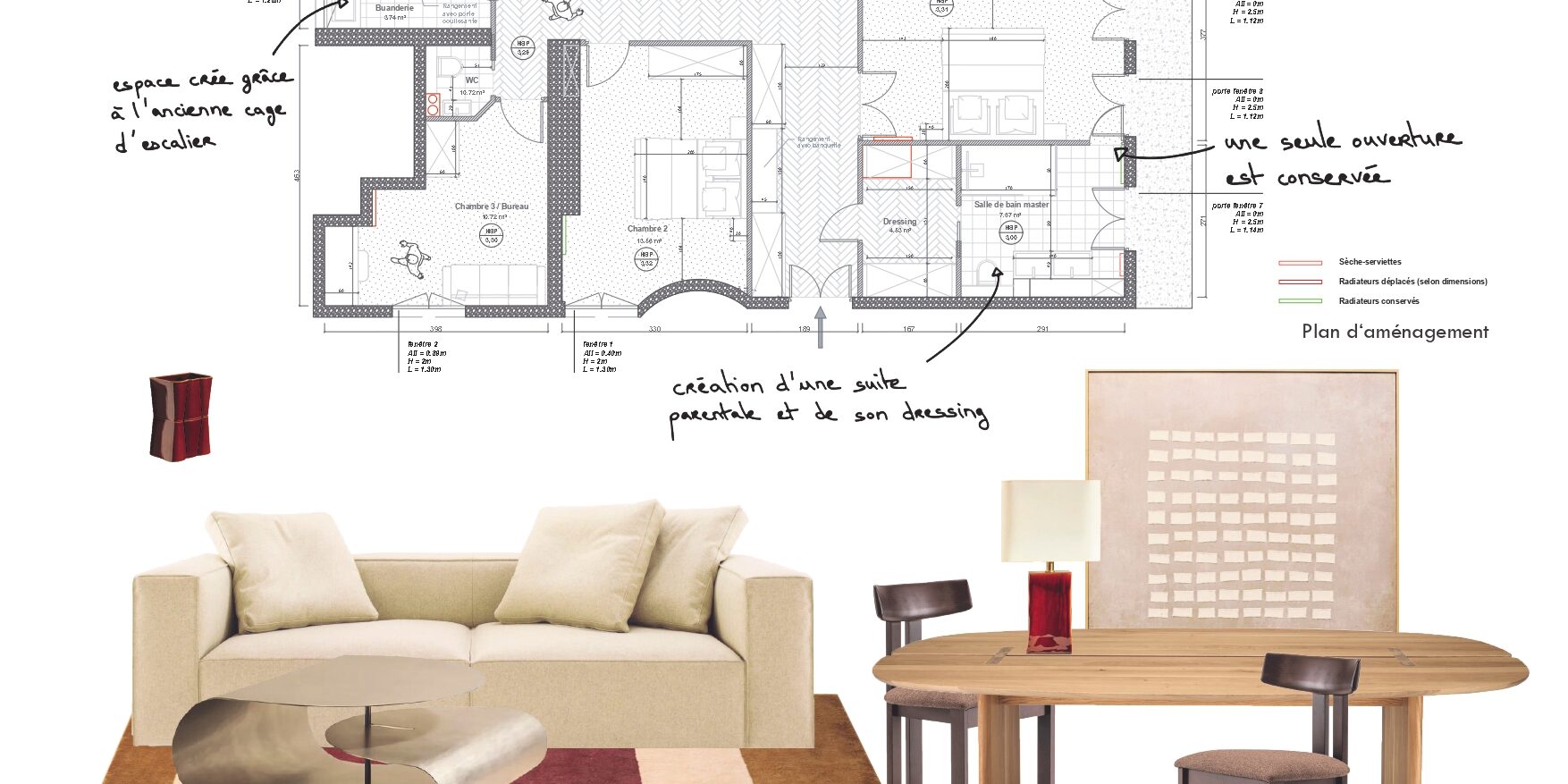 - Discussion autour des circulations, de l’organisation du mobilier, de l’équilibre des volumes, de l’harmonie des couleurs et de la lumière.